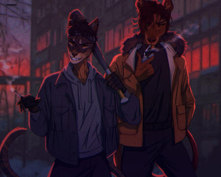 Next are fees inside the picture. It is 80% for every character (in some cases it will be less, f.e. some body parts are closed by another character) for fullrendered pictures with background. For drawings without bg it will be 90-100%. I can also ask you to pay extra for some complex details, such as cars, bikes, armor, weapon etc. It really depends, I can't say exactly how much every position costs, but you should orient on 30-60 EUR extra. We need to discuss every detail, if you want to request complex scene or something similar.